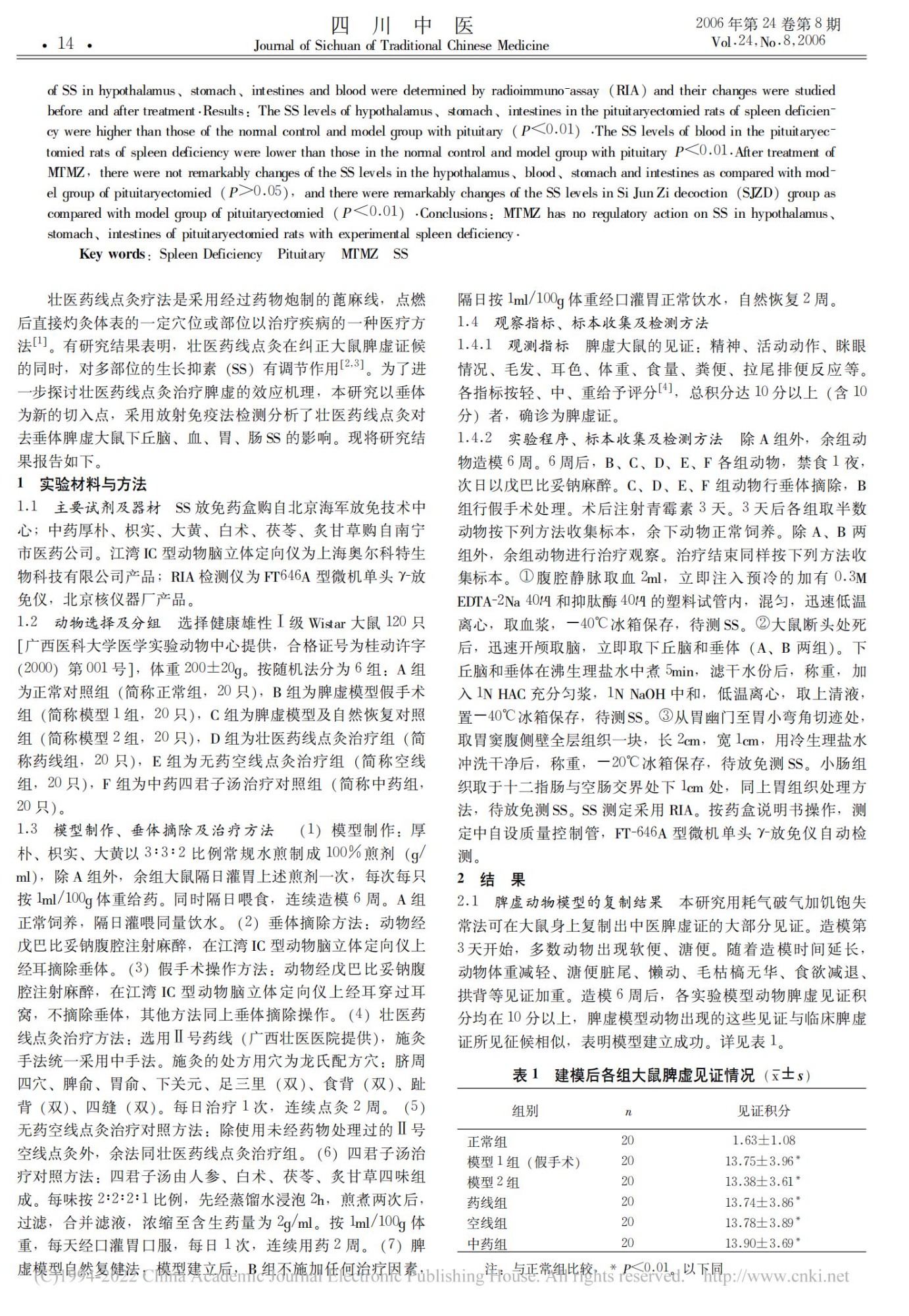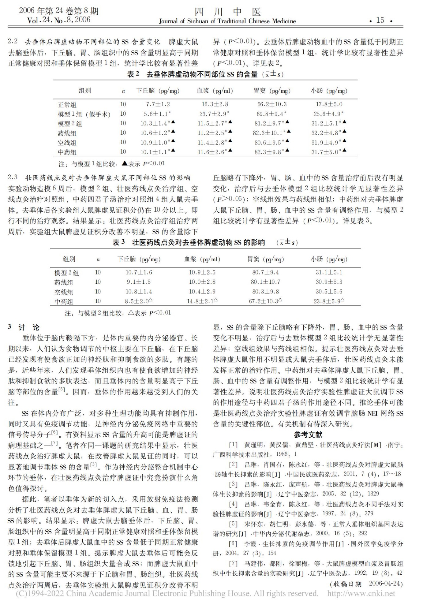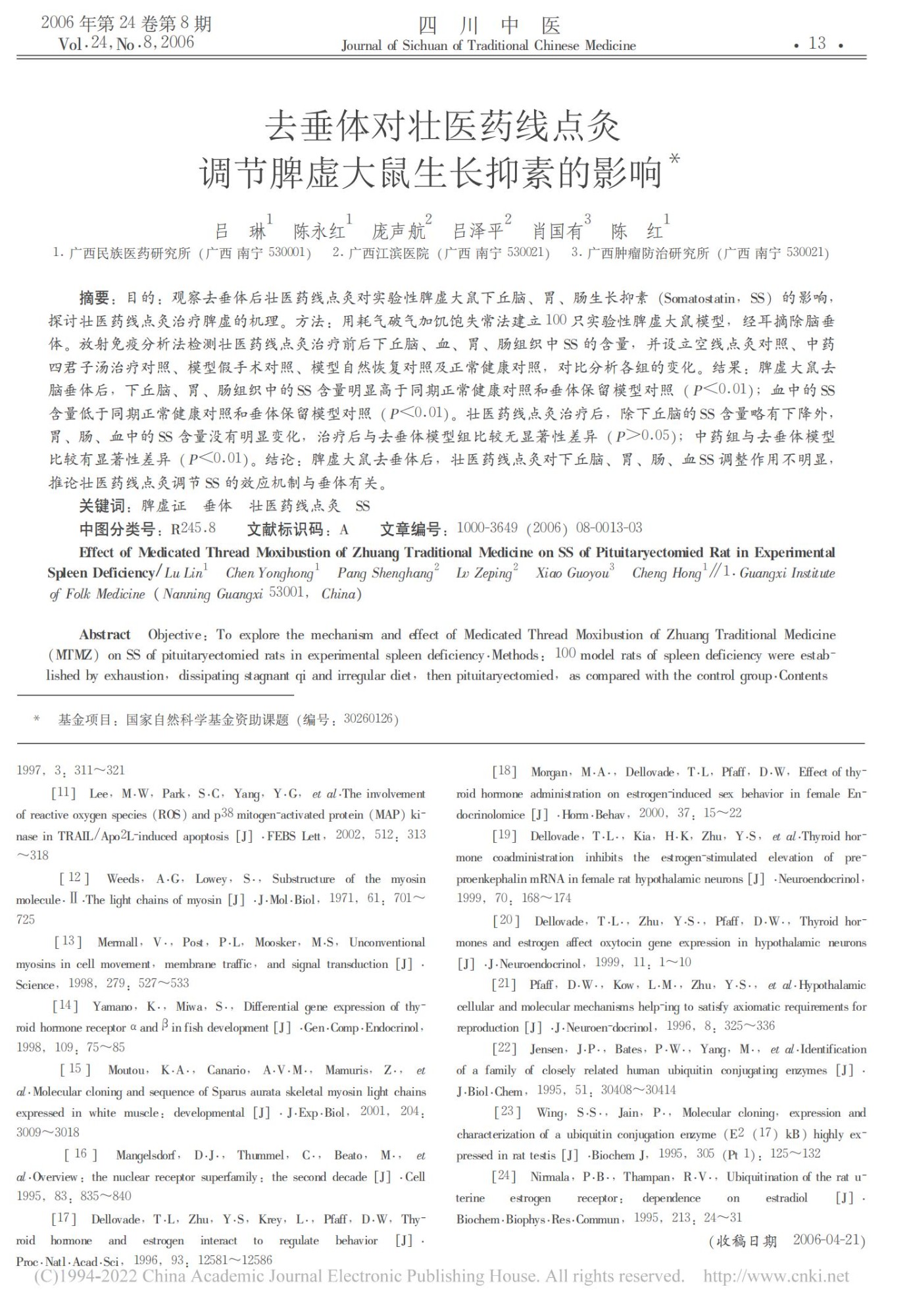 去垂体对壮医药线点灸 调节脾虚大鼠生长抑素的影响