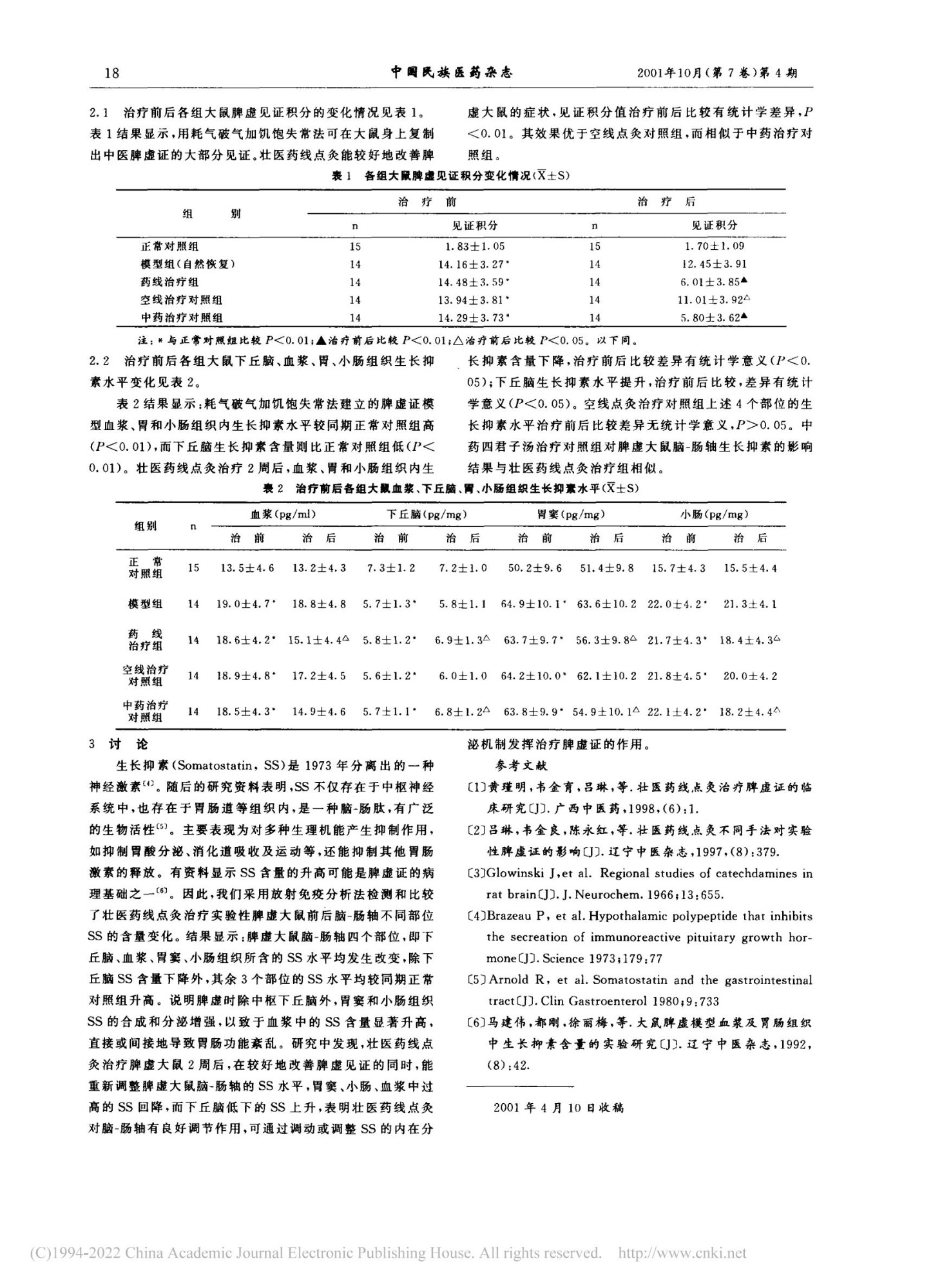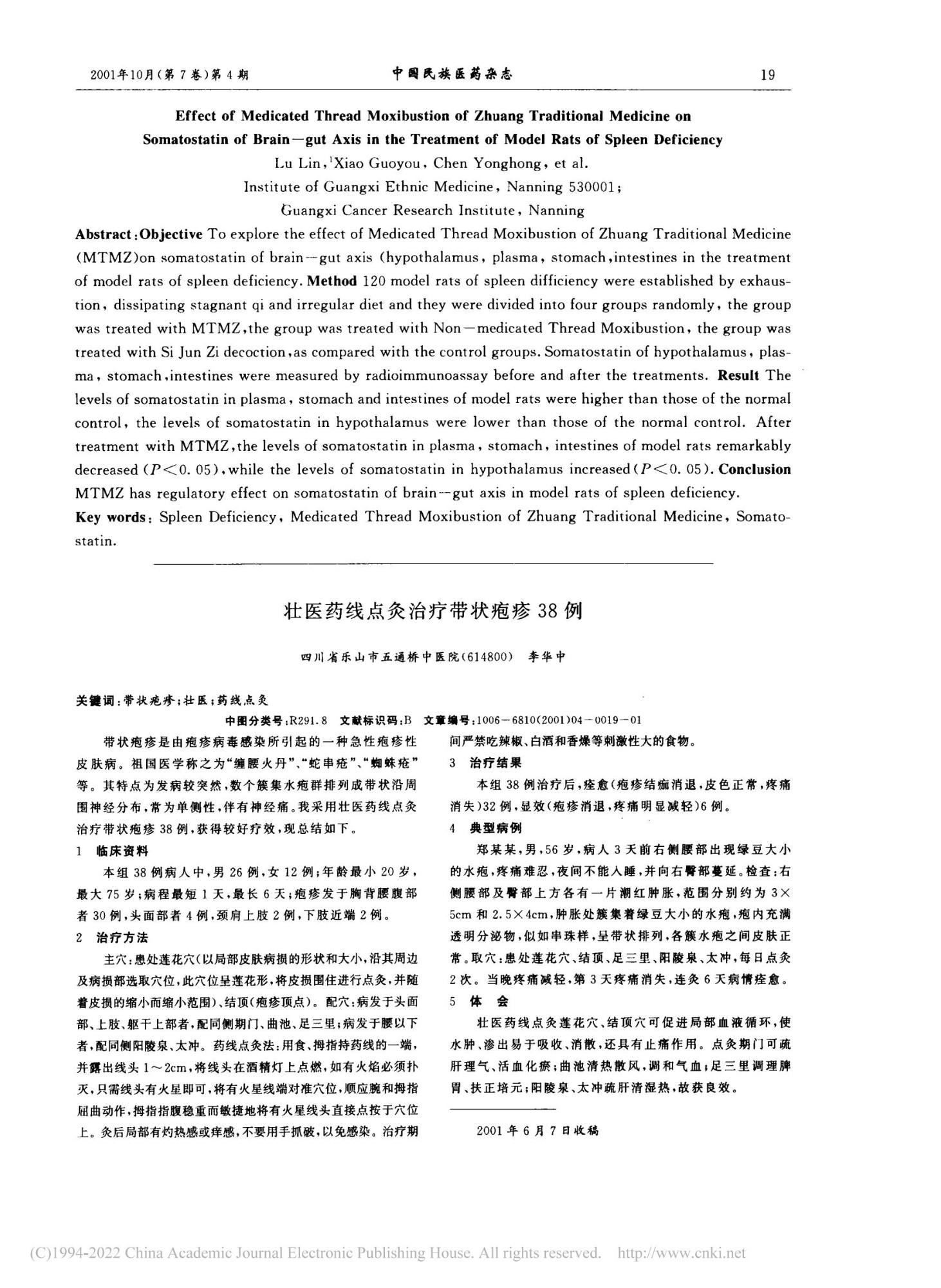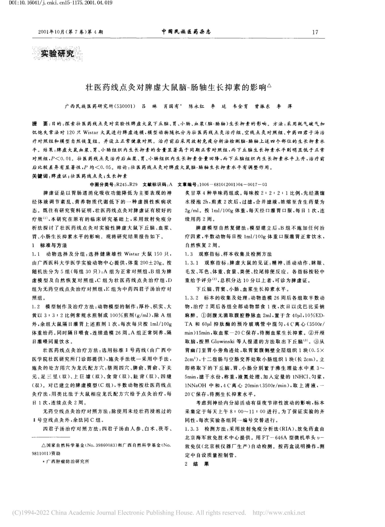 壮医药线点灸对脾虚大鼠脑- 肠轴生长抑素的影响