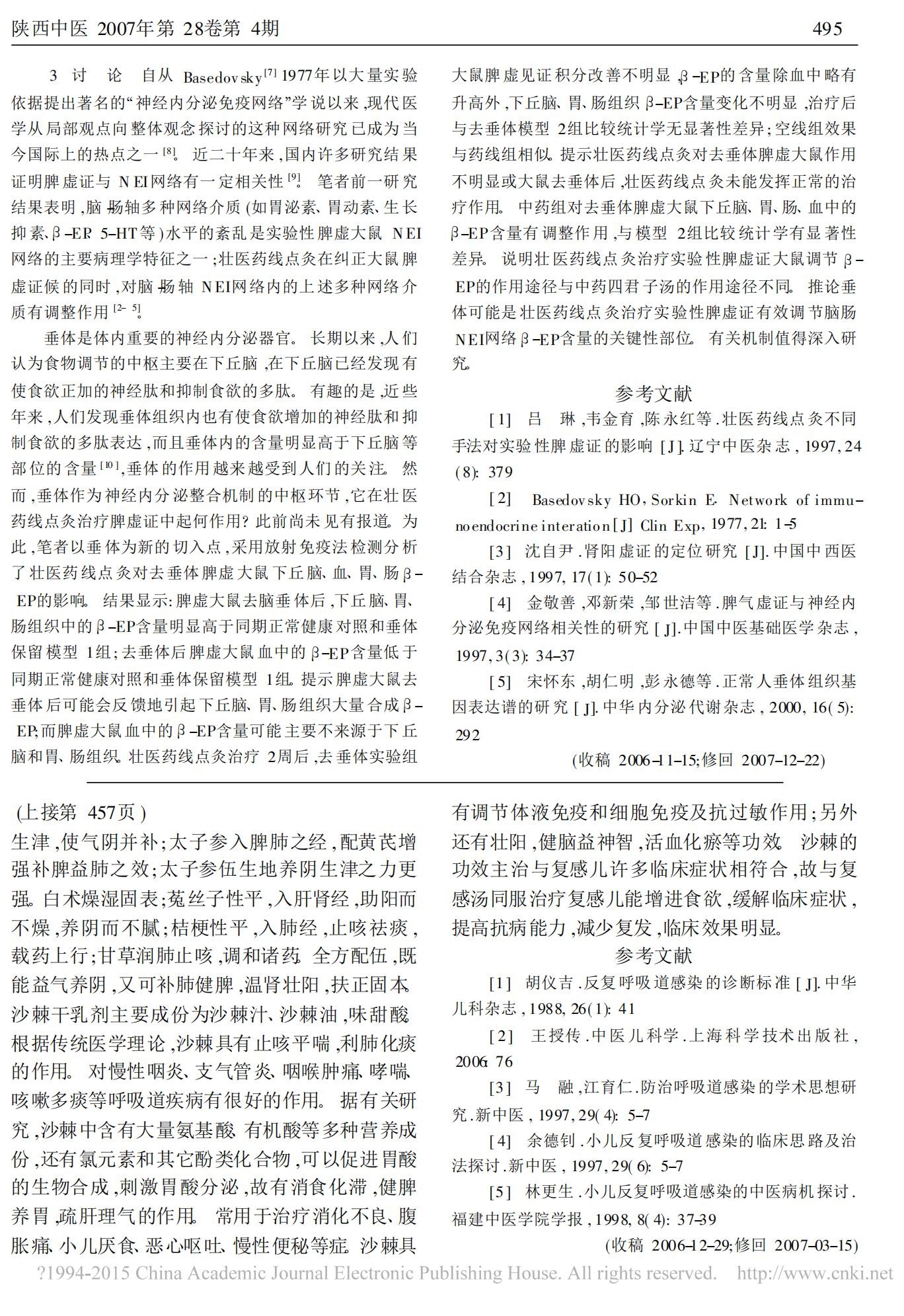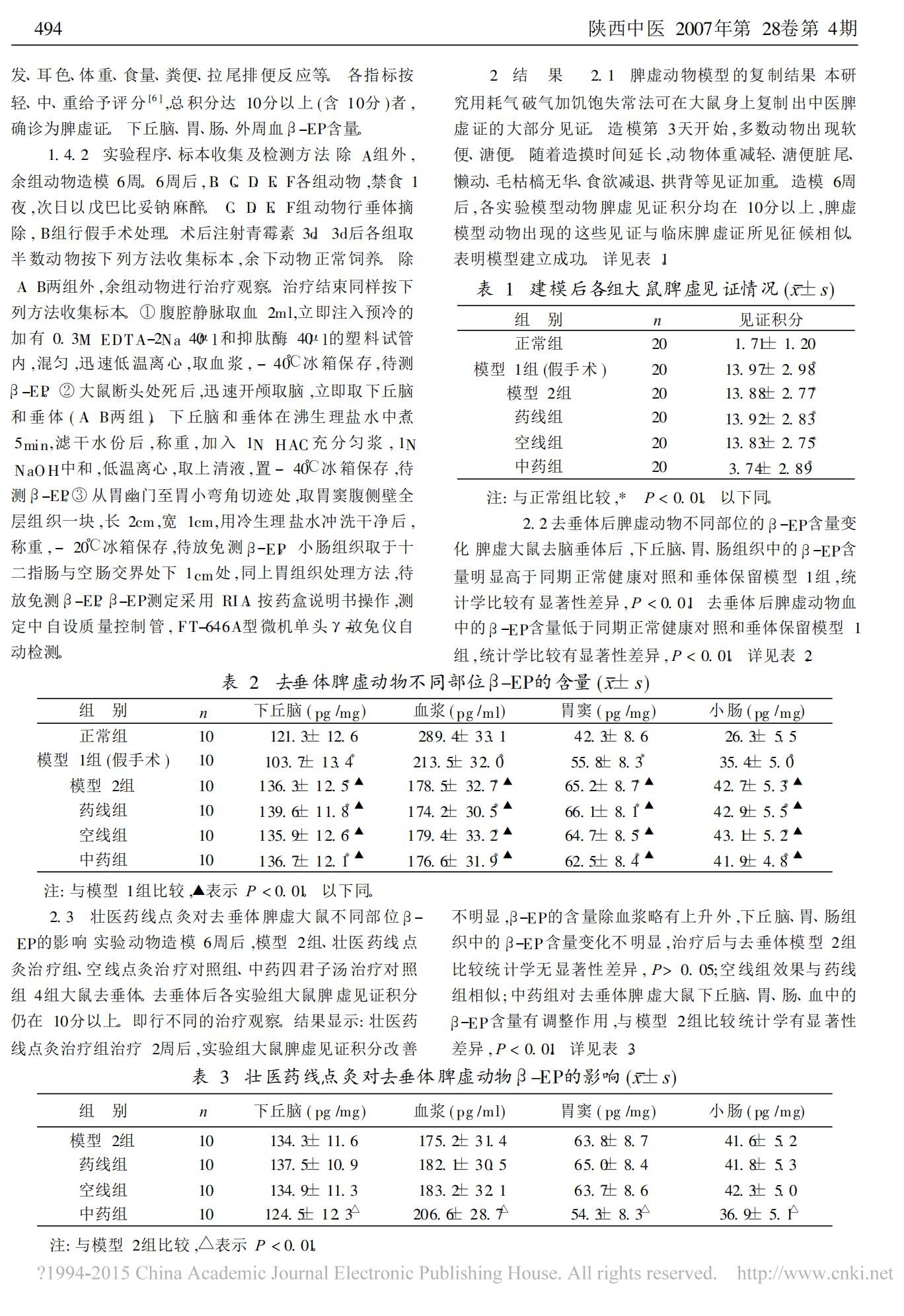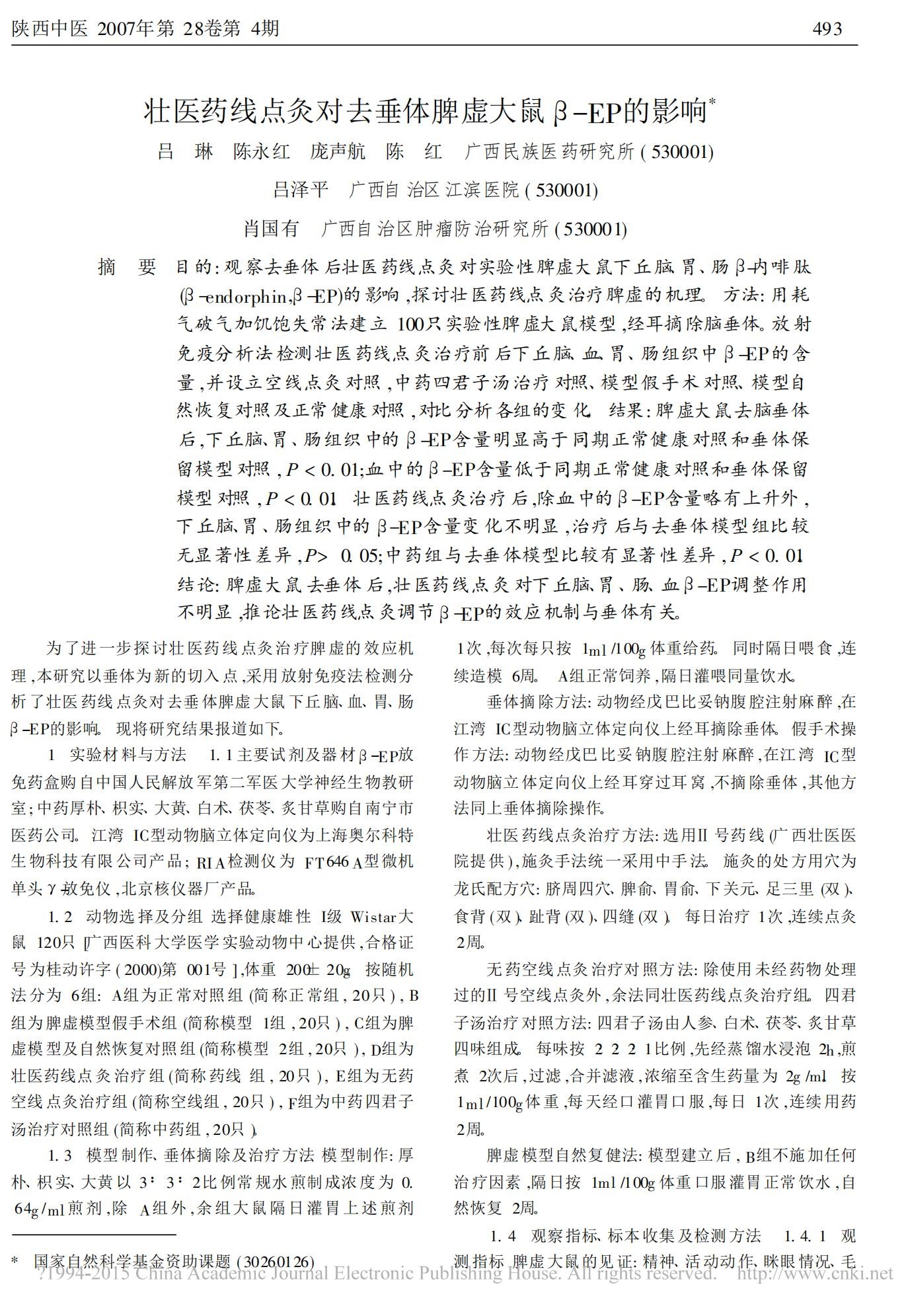 壮医药线点灸对去垂体脾虚大鼠 β -EP的影响