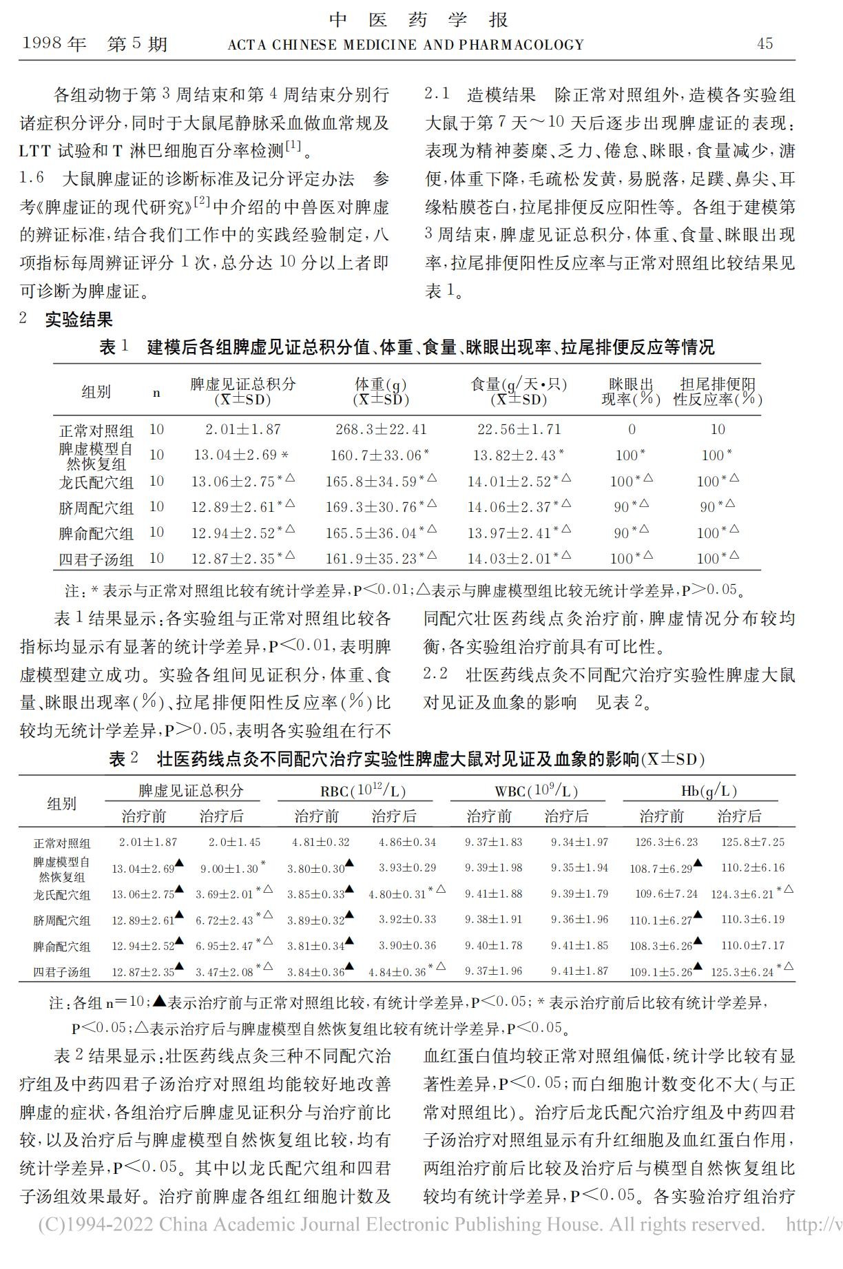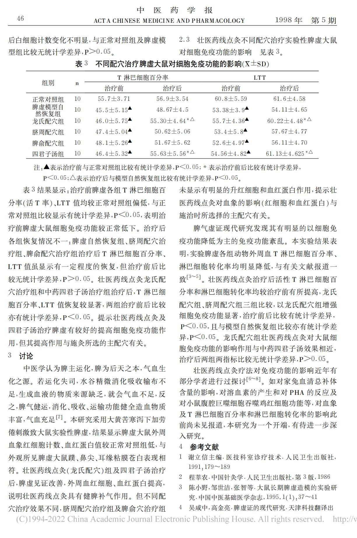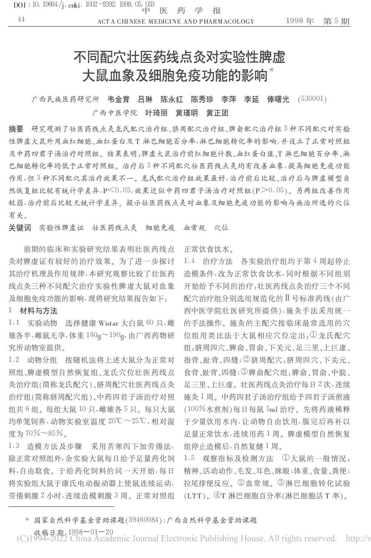 不同配穴壮医药线点灸对实验性脾虚 大鼠血象及细胞免疫功能的影响