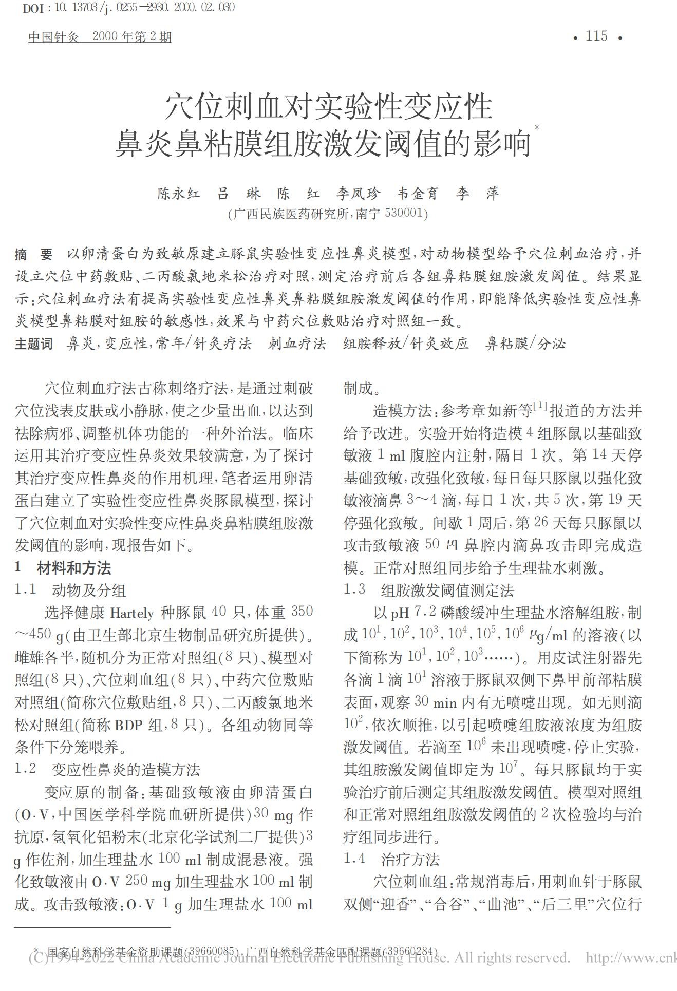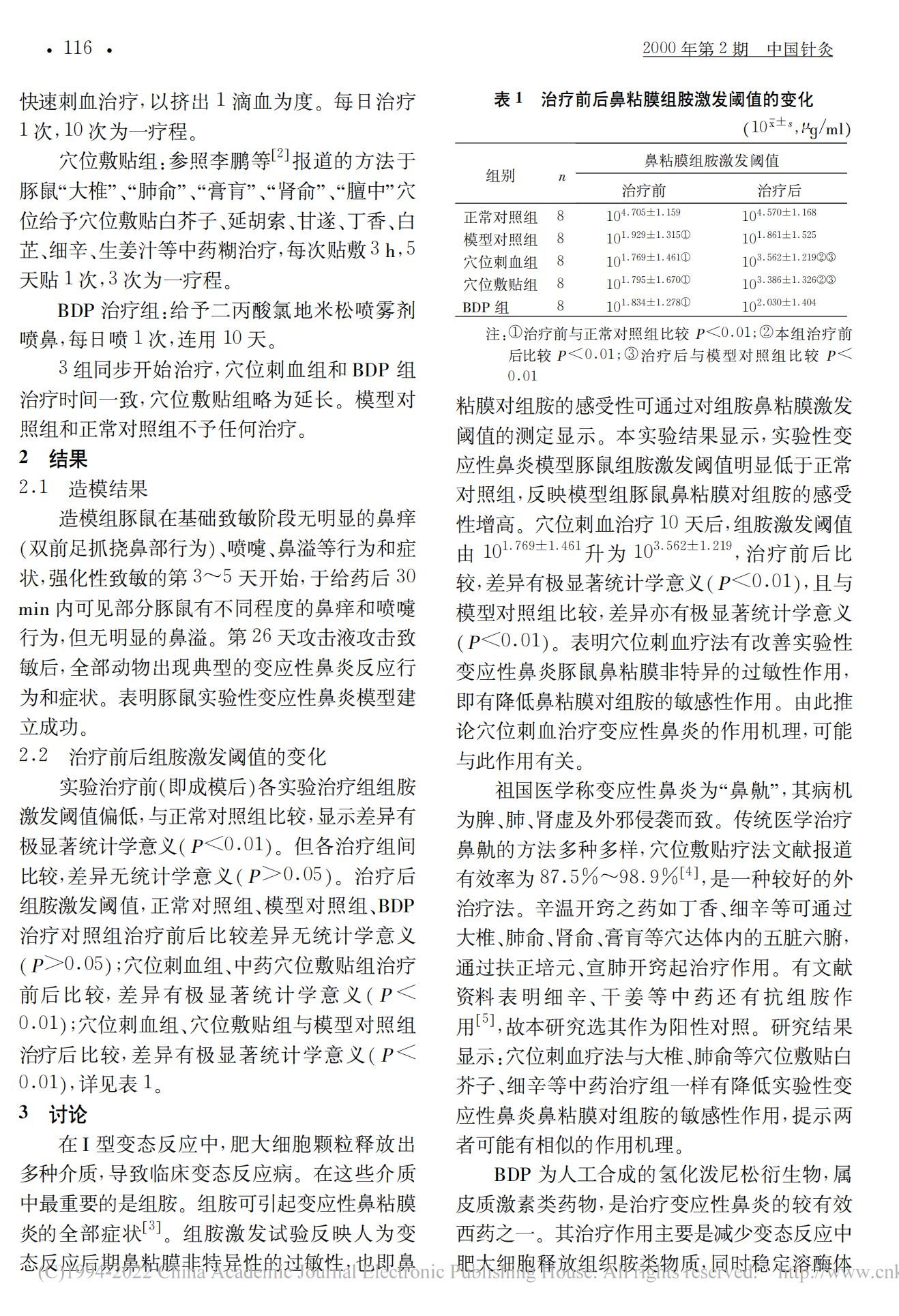 穴位刺血对实验性变应性 鼻炎鼻粘膜组胺激发阈值的影响