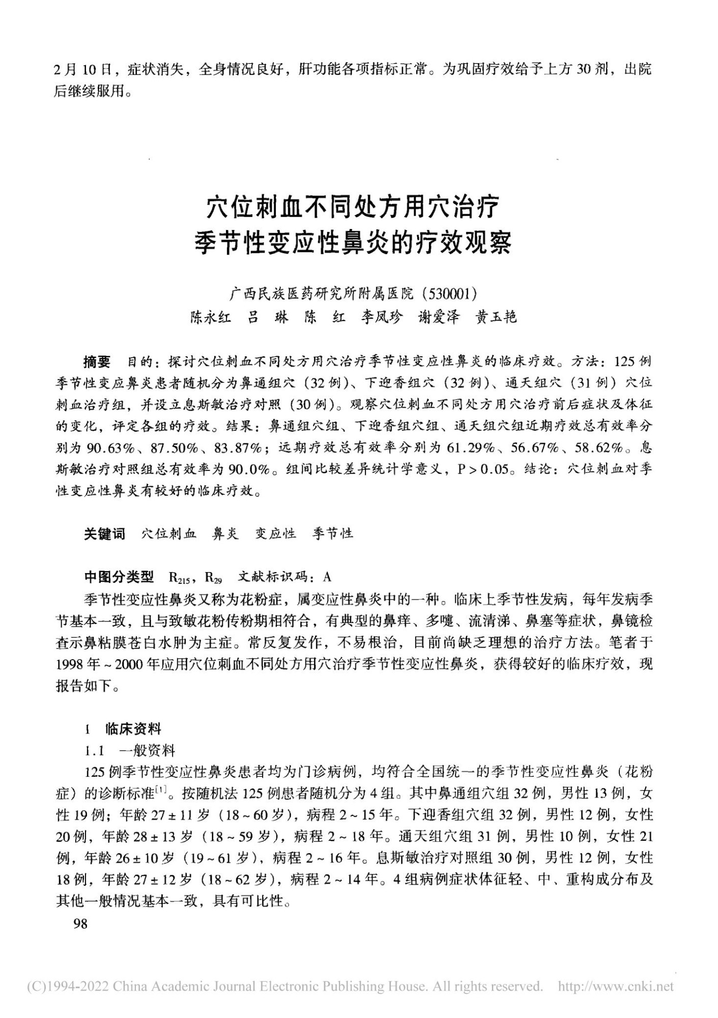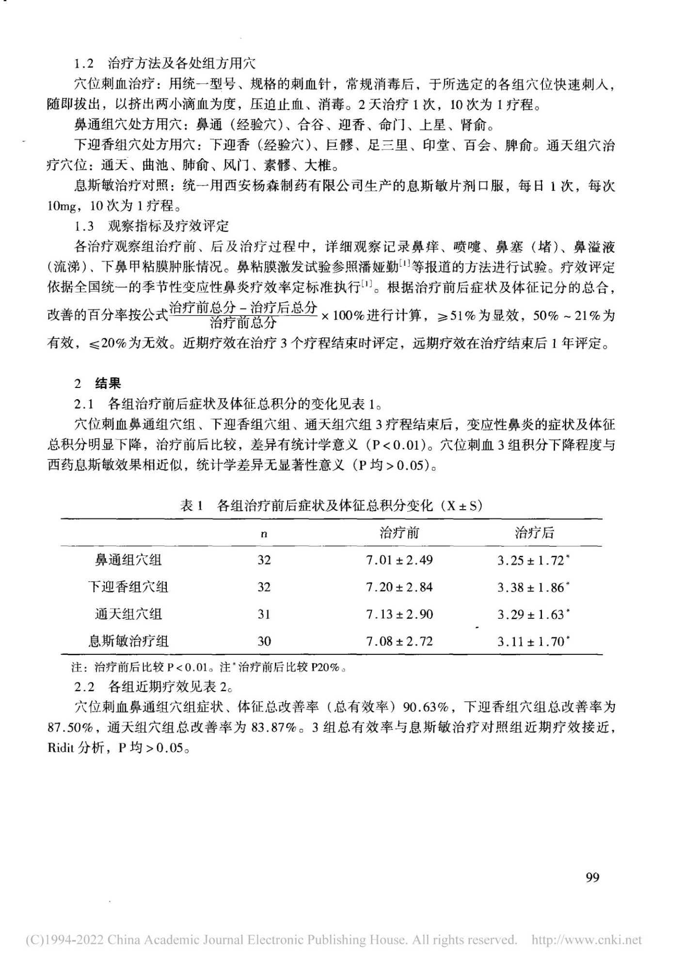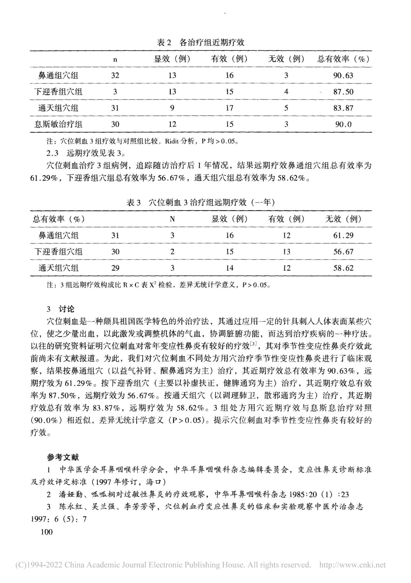 穴位刺血不 同处方用穴治疗 季节性变应性鼻炎的疗效观察