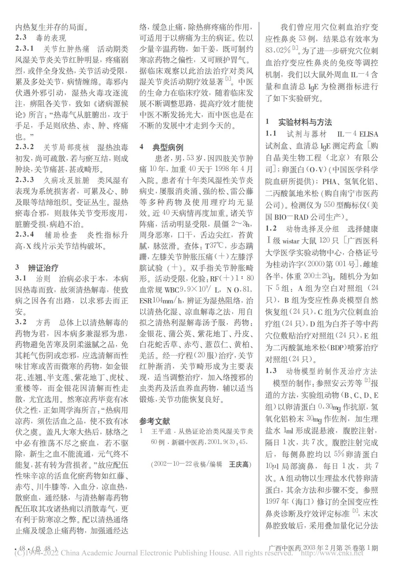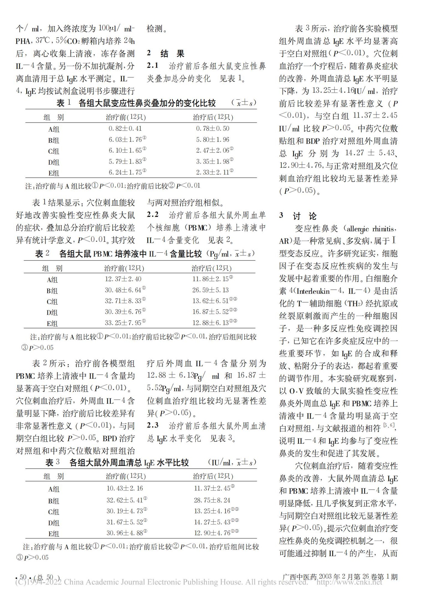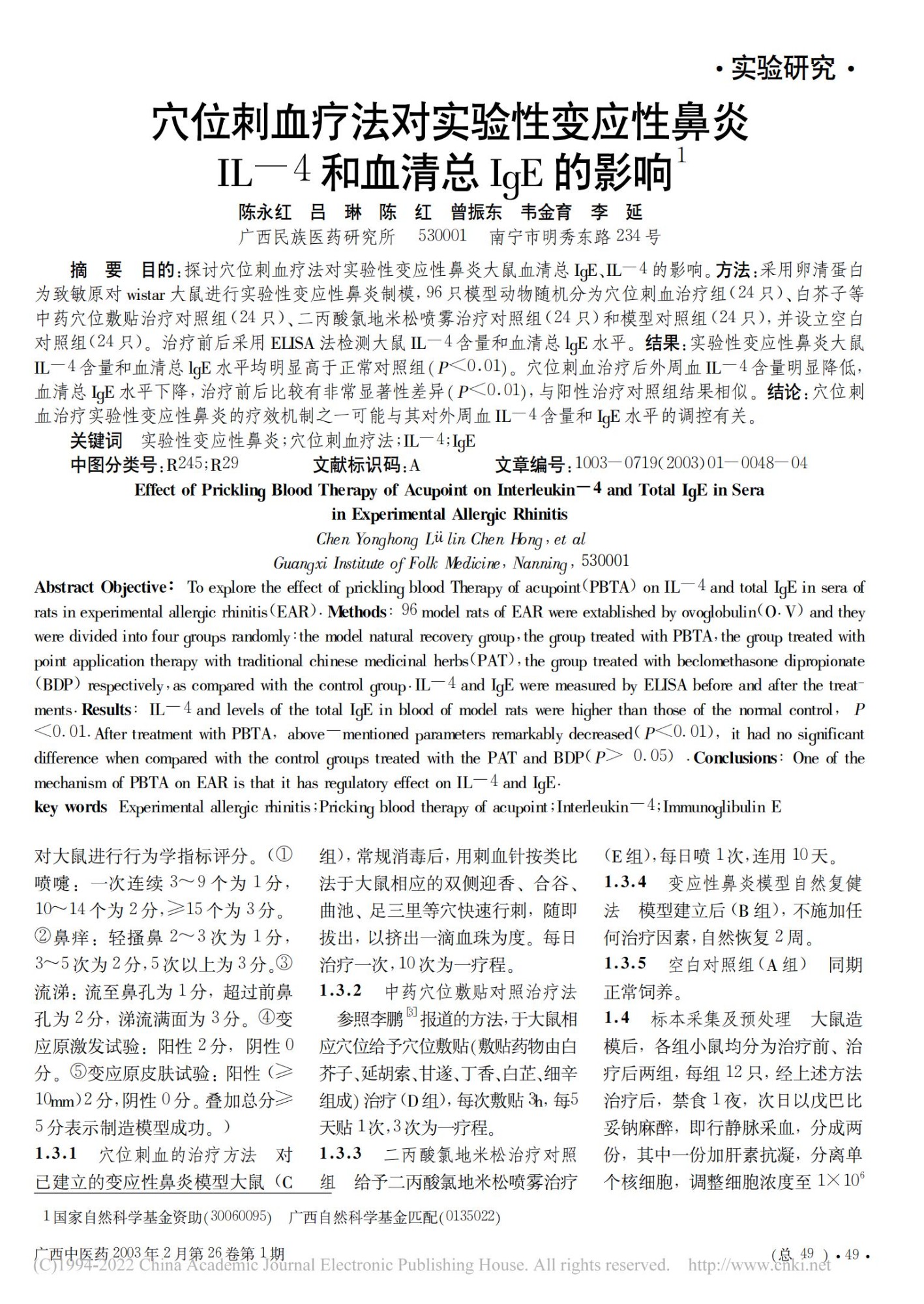 穴位刺血疗法对实验性变应性鼻炎 IL-4和血清总 IgE 的影响