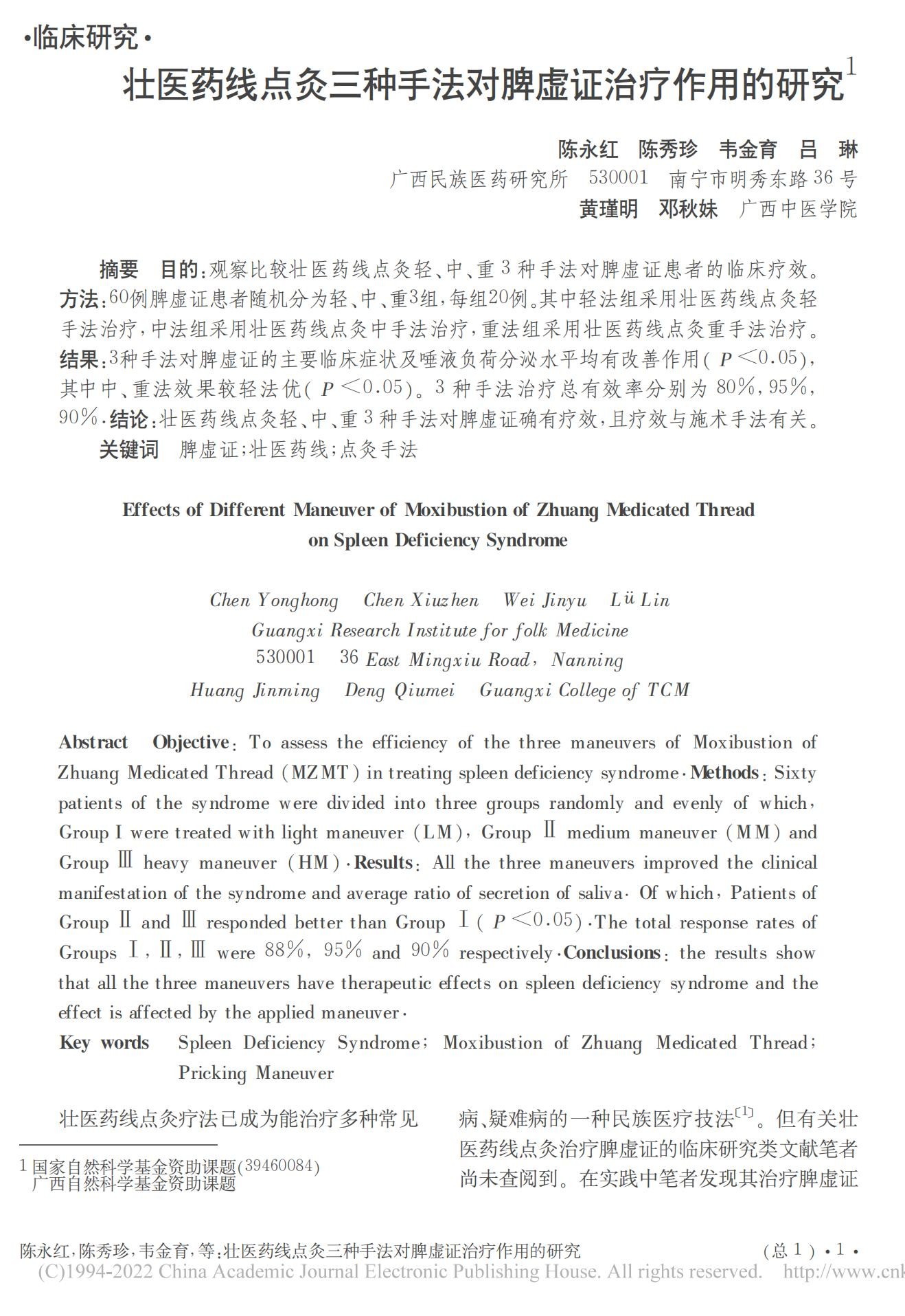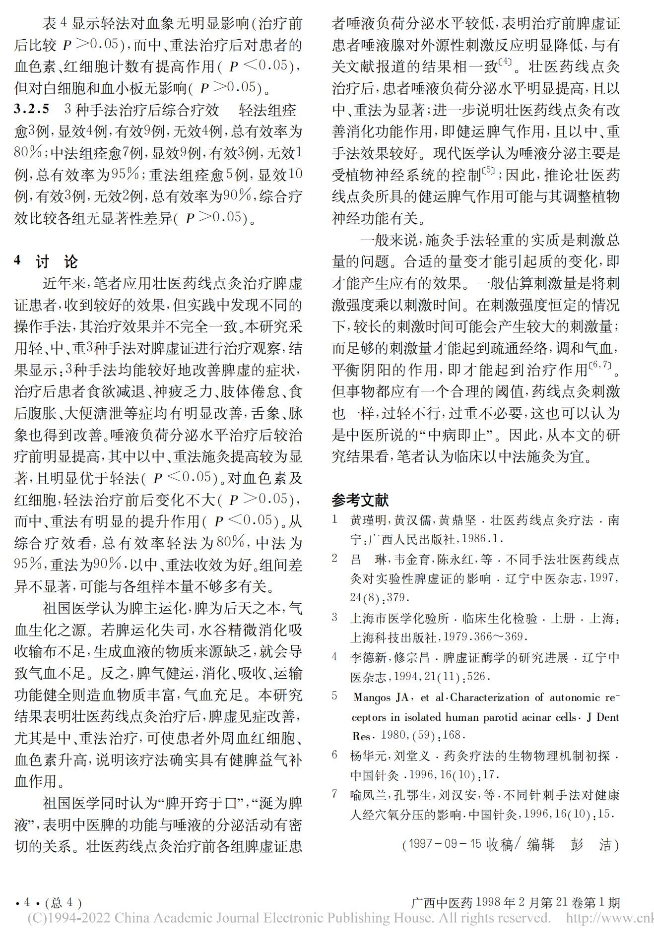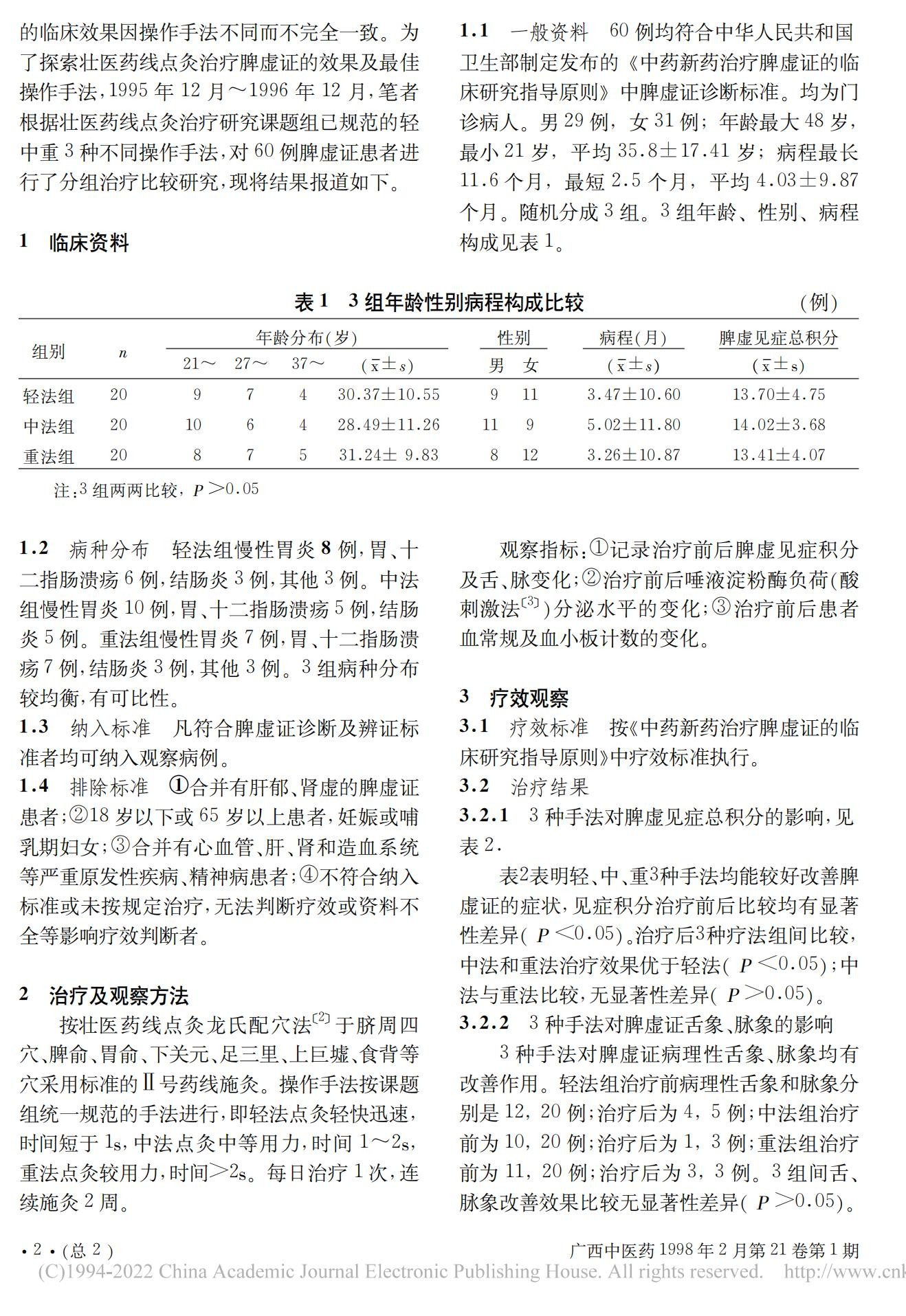 壮医药线点灸三种手法对脾虚证治疗作用的研究